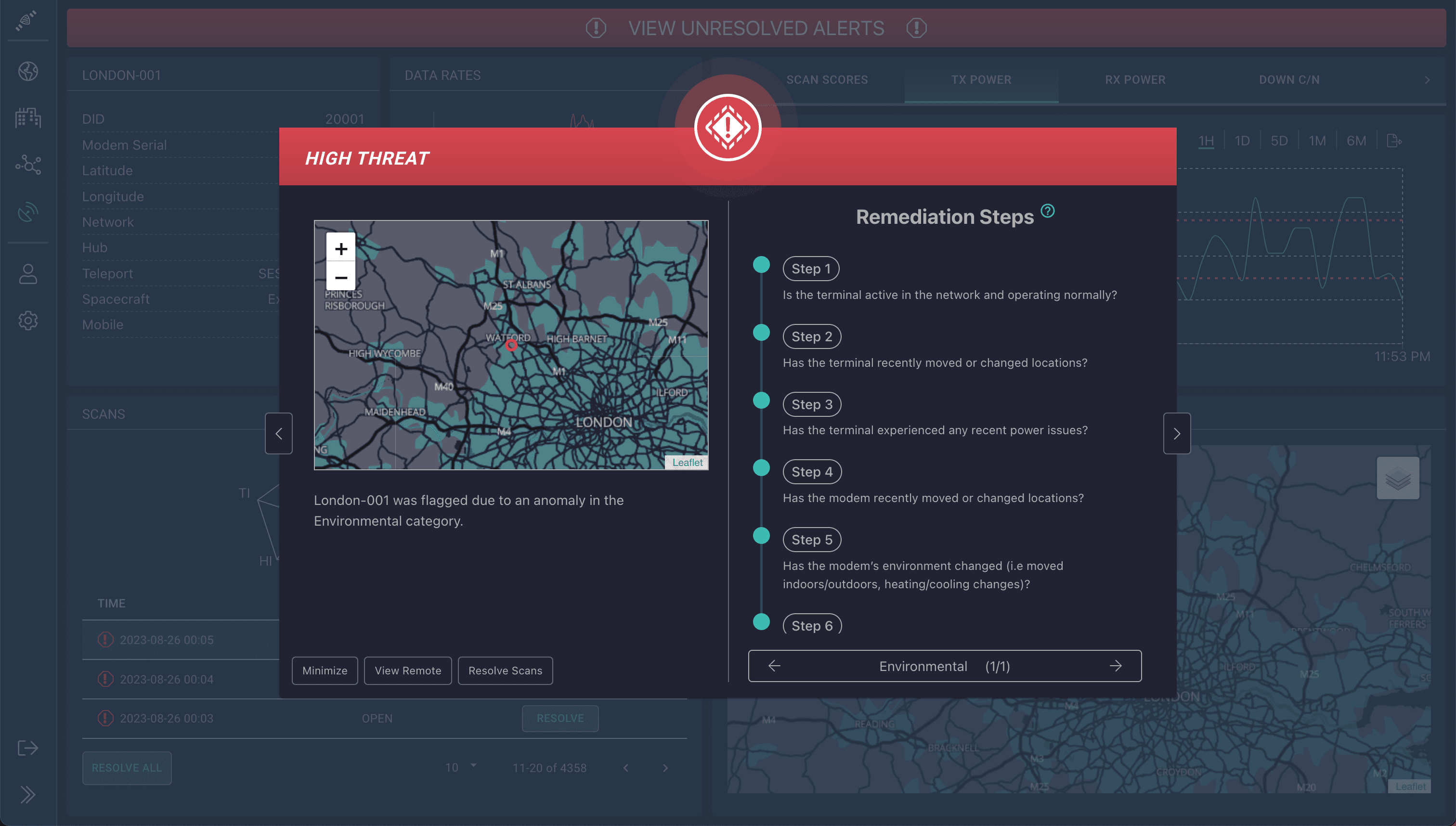 SATCOM Overwatch can initiate automatic countermeasures to isolate suspicious devices, giving network operators ample time for a thorough investigation and ensuring minimal disruptions.