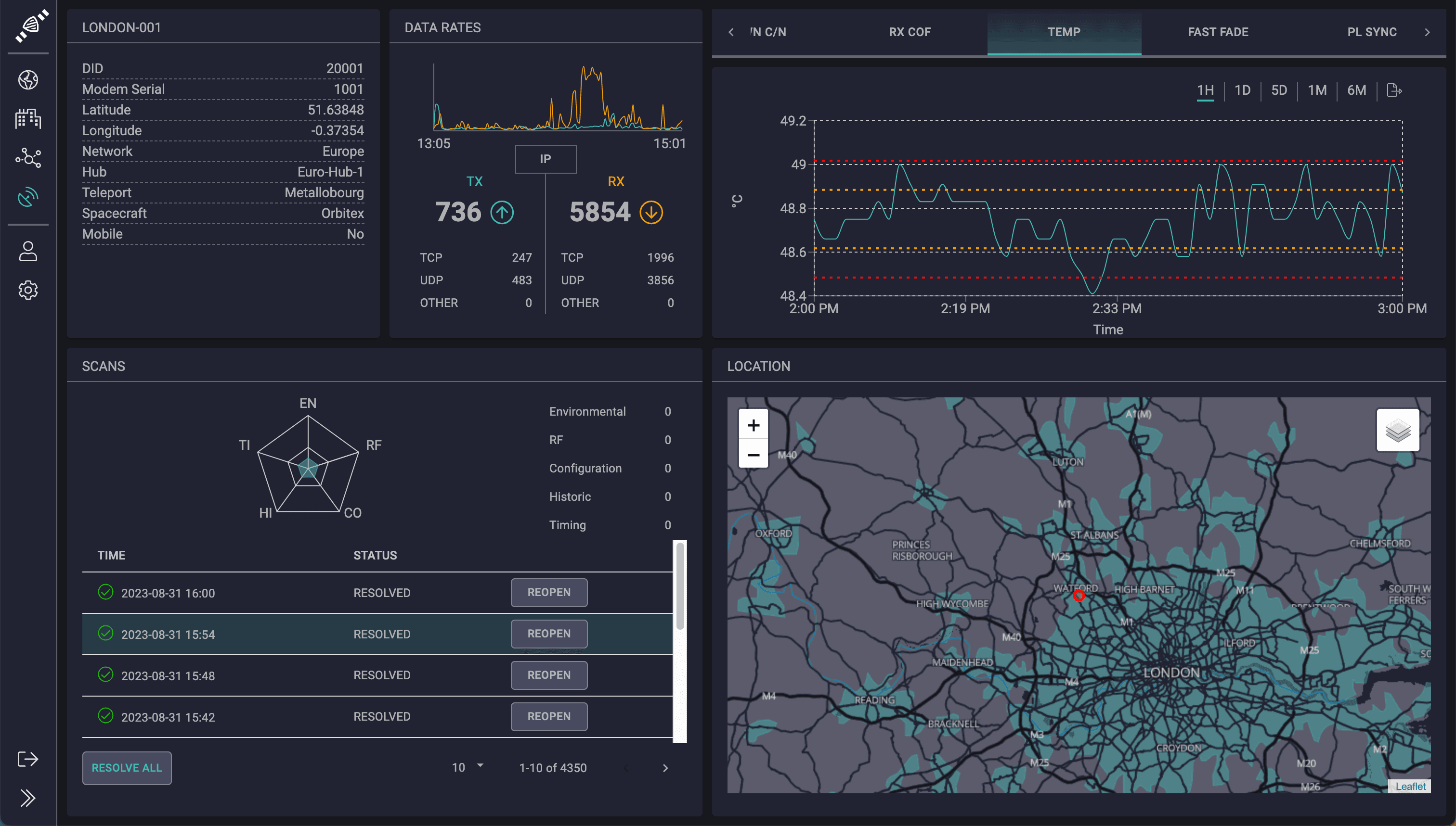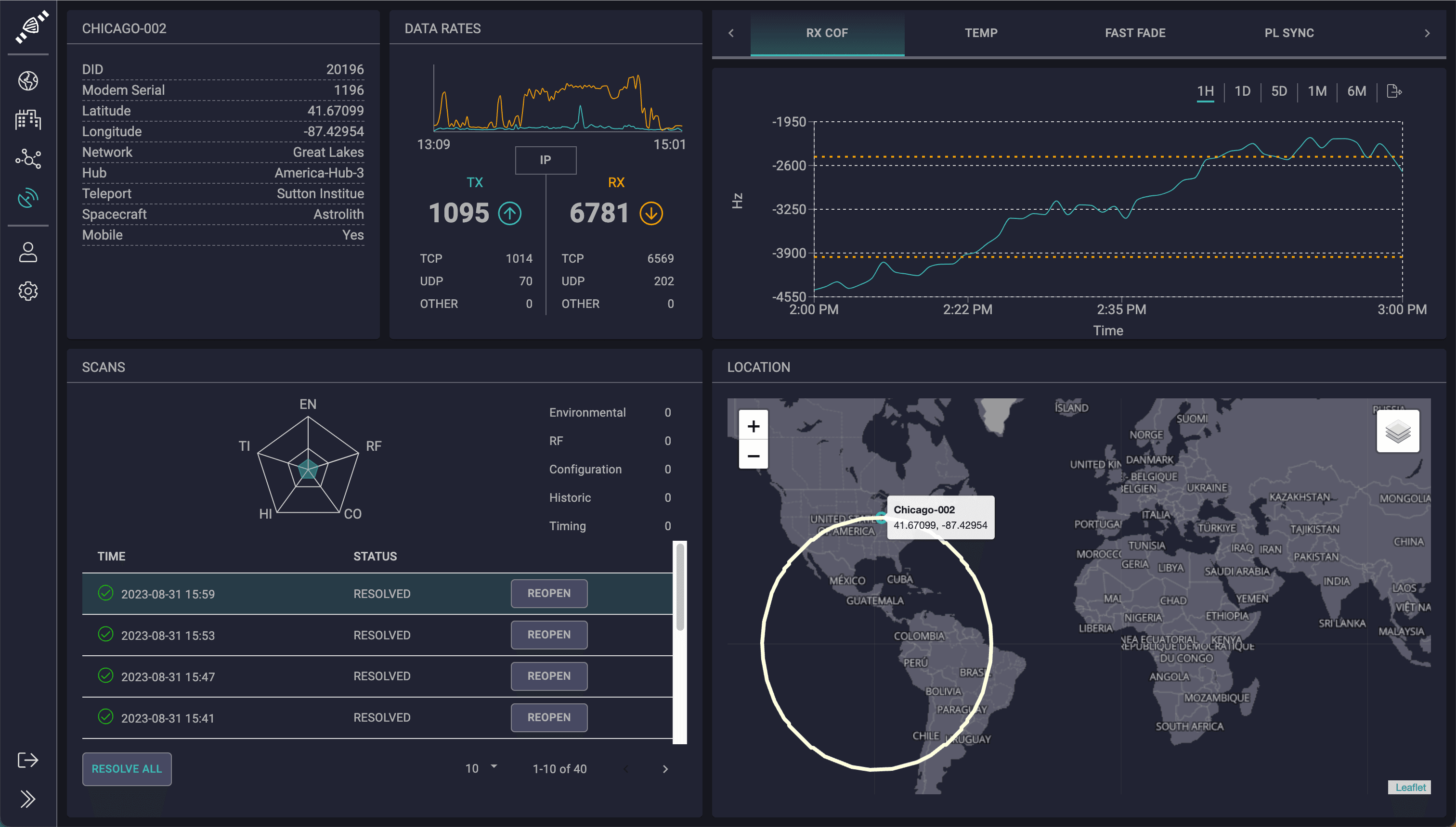 SATCOM Overwatch evaluates crucial location data such as satellite footprints and hub & modem locations. It provides a risk score for individual nodes as well as the entire network, helping you pinpoint potential vulnerabilities.